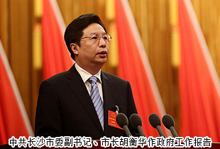 长沙市人大常委会主任袁观清主持会议并宣布大会开幕。大家全体起立,会场响起雄壮的国歌。在热烈的掌声中,中共长沙市委副书记、市长胡衡华作政府工作报告。胡衡华说,2014年,在市委的坚强领导下,全市上下认真落实省委、省政府“四化两型”总战略和“三量齐升”总要求,科学应对复杂严峻的宏观经济形势,干在实处,走在前列,经济社会持续健康发展。预计完成地区生产总值7810亿元,增长10%;固定资产投资5430亿元,增长18%;财政总收入1003.08亿元,增长13.49%,其中公共财政预算收入632.8亿元,增长17.92%;规模以上工业增加值3050亿元,增长12%;社会消费品零售总额3160亿元,增长13%;城乡居民人均可支配收入分别为3.6万元、2.1万元,增长9.4%、10.2%;城镇登记失业率在2.85%以内;居民消费价格指数为102.7;单位地区生产总值综合能耗下降4%。长沙全面深化改革实现良好开局,新兴产业支撑作用凸显,获批国家自主创新示范区,迈入地铁时代、成为综合性交通枢纽城市,品质长沙建设向升级版迈进,县(区)域经济实力不断增强。