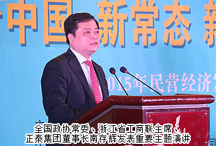会中,全国政协常委、国务院参事、全国工商联副主席、北京大学国家发展研究院名誉院长林毅夫做主题“新常态下的中国民营经济新态势”的报告。全国政协经济委员会副主任、全国工商联副主席、香港经纬集团主席陈经纬,全国政协常委、浙江省工商联主席、正泰集团董事长南存辉发表主题演讲。著名经济学家、中央党校教授周天勇做主题为“新常态下创业就业及发展环境分析”的报告。