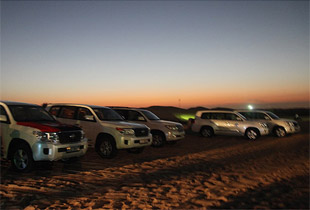 冲沙,是阿联酋乃至整个阿拉伯地区最受欢迎的民间趣味运动之一,LABAB沙漠位于迪拜和沙加两酋长国之间,是阿拉伯地区比较古老的沙漠之一,占地1200平方公里,常年吸引着沙漠越野爱好者的冒险。绿之韵精英置身沙漠,视线所及之处,蔓延着纯净的金黄色,无数如波浪一般荡开的层层沙纹,激起精英们贪玩的情怀。坐上冲沙越野吉普车,沿着沙丘从下而上冲向沙丘的顶峰,然后在沙峰沙谷间滑行,自由地穿梭往来。眨眼间,车子又飞快地滑下沙丘,让人有种坐过山车般失重的感觉。有时面对六七十度的陡坡,汽车引擎发出巨响,车体几乎直立,让看的人也惊出一身冷汗!在冲沙过程中,司机一般会把车子停在沙丘顶部,让乘客下车欣赏沙漠美景,西下的阳光洒在曲线温柔的弧形沙丘上,闪着娴静温和的光芒。赤足在细纱如棉的沙脊上行走,别有一番感受,用力踩踏沙丘的陡峭面,细沙像水银一般倾泻而下,阵阵微风轻轻吹过,一望无际的沙漠卷起星星点点的黄沙,这时有一种置身在油画中的感觉。