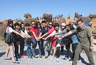 参观完总统府等景点,伙伴们到达的是台湾闻名遐迩的山水名胜——日月潭。澄碧的湖水、秀丽的青山,还有湖中那圆若明珠的天然小岛,让人不禁为眼前的美景而啧啧赞叹。而野柳地质公园的风化岩景区,女皇头像、蘑菇群落、骆驼洗澡、大象戏水……均是大自然鬼斧神工的杰作。临崖远眺,碧波万顷;俯视则惊涛骇浪,夺人心魄。旅行团的成员们见此情景兴奋不已,对着远方大声呐喊。因为作为绿之韵人,从来就不惧怕风浪,不管前行的路有多崎岖,绿之韵人都有迎难而上、披荆斩棘的勇气。