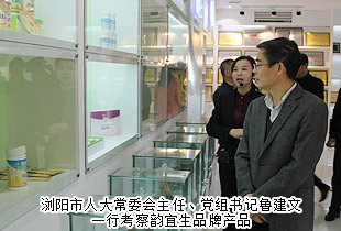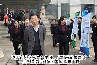 2014年11月21日上午,为更深入了解绿之韵商标品牌培育情况,浏阳市人大常委会主任、党组书记鲁建文,浏阳市人大常委常务副主任、党组副书记孙建科,浏阳市人大常委副主任张友根、刘一江、刘仙娥、杨智等一行莅临安博官网考察调研。