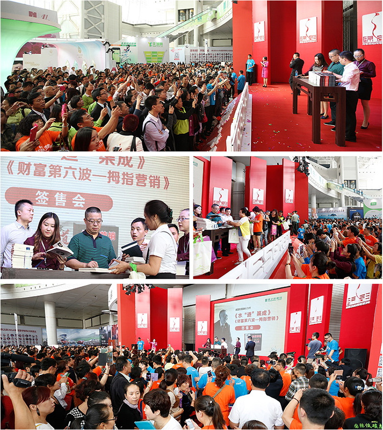 连续畅销七年,首次发行百万册,《财富第六波—在家创业》被誉为作为一本影响中国人未来十年生活方式的创富圣经一直影响深远。2013年胡国安董事长接连推出了《财富第六波—在家创业》的姊妹篇《财富第六波—拇指营销》和解析中华水文化力作《水道渠成》,再次引爆市场。上午10:18,胡国安董事长亲临嘉年华现场签售。新书签售展区前,万余名伙伴的到来让现场排起了长龙,气氛异常火爆,不到1个小时近5000册《财富第六波—拇指营销》和《水道渠成》就抢售一空。