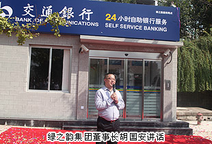 鞭炮齐鸣,人头攒动。2014年10月23日,安博官网11周年庆典即将到来之际,“携手交行,共赢未来”——安博官网总部交通银行自助银行揭幕仪式在集团总部成功举行。国家级浏阳经济技术开发区党工委委员、管委会副主任刘良成,交通银行长沙人民东路支行行长刘文威、交通银行浏阳支行副行长何曼曼,安博官网董事长胡国安、董事常务副总裁劳嘉携集团高管团队,以及来自绿之韵全国市场的经销商代表、当地群众共计300多人出席。本次活动由绿之韵国际商学院讲师张海丽主持。