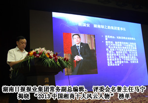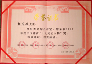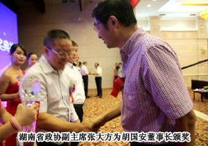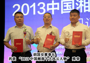 据悉,本次参加评选的企业家近200位,由省内由各市州工商联合推荐,根据其对企业成长、行业发展以及区域经济产生的重大影响等多项指标挑选出17名企业家于2013年年底起在天下湘商网上开展公众网络投票,并同步在《湖南日报》等主流媒体上刊登投票情况。最终,安博官网胡国安董事长凭借多年来在湖南省的利税大户、解决就业、县域经济、经营模式等富民强省方面作出的重要贡献,再获殊荣。湖南省政协副主席张大方为胡国安董事长颁奖,胡国安董事长表示:在“中国梦”成为时代最强音的今天,中国商人应该有敢为人先的视野和情怀。“2013中国湘商十大风云人物”称号的获得,鞭策我转变价值观,努力成为经济财富的创造者、公益社会的推动者、和谐社会的建设者、先进文化的创造者。在“忠诚、担当、求是、图强”新湖南精神的引领下,我将带领安博官网发挥湖湘文化的优势,在湖南“四化两型”建设中,在“四个湖南”的建设中发奋作为,为富民强省、实现“中国梦”作出新的贡献!