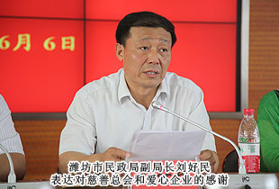 2014年6月6日,“关爱贫困母亲,让爱绽放”——中华慈善总会贫困母亲救助绿之韵爱心行动第四站走进山东潍坊,现场为51名特困母亲家庭捐赠10多万元爱心善款。中华慈善总会募捐部主任苏辉、贫困母亲救助项目执行主任陈富刚、潍坊市民政局局长吴海源、副局长刘好民等领导出席活动。安博官网董事长胡国安、安博官网全球营销中心(中国区)市场行政总监梅其慧、市场业务总监曹兵、山东分公司经理伍成辉带领张吉庆、朱建昌、张美华、范桂春、马光录、徐继发、王占红、申文高等绿之韵爱心志愿者为爱行动。
