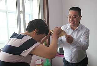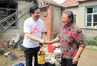 郭明星的丈夫,九年前因脉管炎服用激素类药,肾脏严重受损,现每周必须透析三次,否则会有生命危险。为了吃药、透析,卖掉了房子。为了挽救丈夫,没有生存技能的郭明星在早市和晚市卖布鞋,微薄的收入,除了要维持丈夫的医疗费用,还有目前就读高三的儿子所有的学杂费用,年迈母亲及一家人的生活费用……看着被病痛折磨的丈夫,而自己无能为力时,郭明星经常以泪洗面。就在生活几乎失去希望时,绿之韵爱心志愿者李加勇向中华慈善总会提供了救助材料,为这个家庭争取到了救助机会。除了爱心善款,志愿者们还带来了米、面、油,我们相信,爱,一定能让温暖这个家,为他们带去生活的希望。