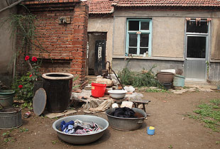 破旧的大门敞开着,一位年事已高的婆婆正弯腰洗衣,院子里除了几朵开得正艳的花,毫无生机。见到绿之韵爱心志愿者一行的到来,老婆婆艰难地起身,满脸让人心疼的笑意。资料显示我们此行慰问的对象叫王瑞芬,今年67岁。只是没想到,眼前这位婆婆竟然就是我们寻找的主角,步履蹒跚,苍老弱态,分明超出了实际年龄。