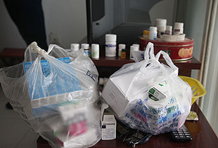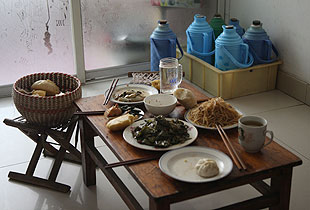 上百种药瓶药盒成为这个家庭最刺眼的标签。贫困母亲郭明星,46岁,是全家人的支柱。来到这个家时,他们正在准备吃午饭。几个包子、两碟咸菜、一盘土豆丝,竟就是一家四口人的中餐。简单得没法用词语形容。