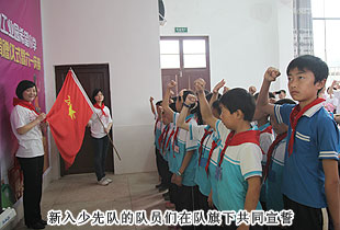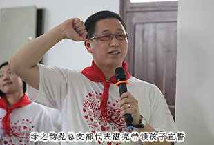 接着,在绿之韵党总支部代表湛亮的引领下,新入少先队的同学们在团旗下共同宣誓,加入共青团少先队的行列,为共产主义事业,贡献出一切力量!而绿之韵慈善基金的爱心志愿者们也共同宣誓,积极倡导 “造福人类、回馈社会”的志愿者精神。帮助需要帮助的人,使人生价值得以璀璨发光。让我们用爱撑起一片蓝天,用情滋润心田,共筑爱心长城。