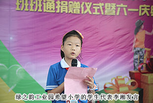 爱是看不见的语言,爱是摸不到的感觉,但爱是人类最美好的情感。现场,绿之韵工业园希望小学党支部书记罗玉明深情回顾,回顾希望小学建校前期的因设施简陋而日渐艰难的历程,回顾绿之韵入驻工业园后积极了解查看学校情况的诚挚,回顾安博官网捐资建学后学校焕然一新的模样,诸多的渊源让我们紧密相连,诸多的经历让我们心手相牵。而安博官网董事常务副总裁劳嘉在活动现场的致辞更道出了绿之韵人的赤子之心:“我们希望尽一己之力让爱传播,播散到每个孩子们心里,奉献真请诚爱心,尽情展现属于绿之韵人特有的风采,让关爱充满校园,让温情的阳光撒向每一个人需要帮助的孩子!”此番言辞以及绿之韵慈善基金的义举,让现场的人们深受感染。绿之韵工业园希望小学的学生代表李湘,深情并茂,现场讲演,将感恩倾注于童稚而慎重的语言。