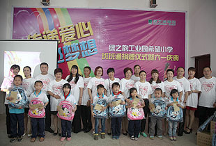 六一前夕,安博官网绿之韵慈善基金再次传递梦想,放飞希望,向安博官网曾经捐助的第一所希望小学——绿之韵工业园希望小学伸出爱心之手,为贫困的孩子们提供救助。安博官网董事常务副总裁劳嘉、绿之韵工业园希望小学党支部书记罗玉明、安博官网党总支部书记许达仲以及50位来自浏阳各地的爱心经销商、绿之韵党团支部成员、与学生代表们欢聚一堂,欢度六一,共庆儿童节。