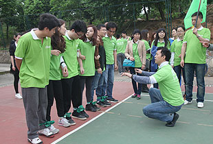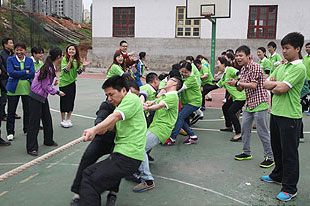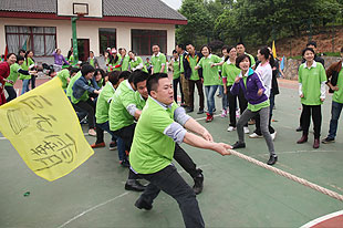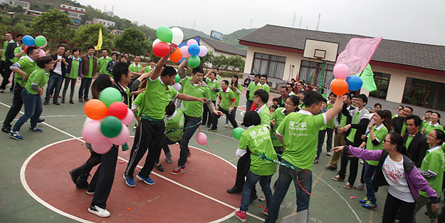 休息片刻后,迎接大家的是绑腿赛跑、保护气球、跳绳比赛、极速快递、拔河比赛等团队协作拓展活动。在安博官网董事常务副总裁劳嘉、总裁助理方彦雄的亲切指导下,在现场工作人员的精心组织和安排下,所有员工进行了科学分组,韵城队、逆风飞扬队、承熙队、方特队、梦之队、超人队、闪电队和巨无霸八支队伍迅捷诞生。每个队选举产生了一个队长,自编队呼,彰显必胜决心……通过组建队伍,明确了组织架构,为高效、有序地进行团队项目做好铺垫,初步形成了良好的团队氛围。紧接着,八支队伍精神抖擞,士气高昂,摩拳擦掌,先后进行了绑腿赛跑、保护气球、跳绳比赛、极速快递、拔河比赛等多项团队协作项目,最终巨无霸队、韵城队、梦之队分居冠亚季军。通过这些拓展活动,增强了大家自我激励、适应能力、忍耐的信心和积极思考能力,明确了团结合作、目标分工、角色定位和执行力的重要性,极大增强了全员对绿之韵大家庭的归属感和向心力。