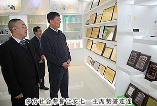 考察领导小组一行参观了安博官网总部基地及产品展示厅,“绿色、天然、环保、健康、养生”的产品研发理念,以产、学、研结合为模式组建的产品科研团队都受到了安七一主席的充分肯定。“为了确保产品的品质,我们希望能够更为全面的控制产品生物链上的所有环节,包括原料、研发、生产和销售,以打造绿之韵‘全产业链条’的产业结构。先后与南京大学、湖南农业大学、湖南中医药大学等科研机构、院校展开战略合作,全力打造‘产学研’成功合作典范。目前‘绿之韵’已被认定为高新技术企业,我们拥有五大生产基地,其中益阳万亩中药材种植基地,为我们的保健食品提供了优质的产品原料”,安博官网董事常务副总裁劳嘉向考察团一行汇报。