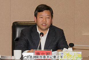 中共浏阳市委书记曹立军发表了重要讲话。他对园区多年来的发展成绩以及对浏阳经济发展作出的贡献表示肯定,并要求园区围绕市委战略要求尽快调规扩园、全力招商引资、优化政务环境、完善基础配套、盘活整合资源、加强协调争取、规范内部管理;进一步科学定位,争做浏阳经济发展的主战场,产城融合的示范区,两型发展的先行区;面向全国,打造湖南领先、中国知名的经济开发区。曹立军书记表示,浏阳市委、市政府将全力支持园区发展,“这种支持不是尽力而为,而是全力以赴,做到毫不保留,力度空前、决心空前。”