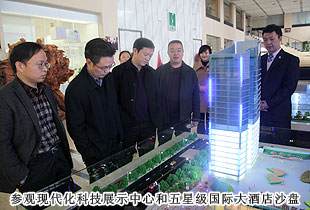 考察组一行首先参观了安博官网办公大楼。企业文化展区、产品展示厅、现代化科技展示中心和五星级国际大酒店沙盘……浏阳市人大常委会常务副主任孙建科、秘书长唐林军等领导边走边看,边聆听边询问,赞叹之声不绝于耳。期间,胡国安董事长还就产品理念、市场运营、产学研合作、党建工作、公益慈善和未来规划等相关情况向考察组一行作了汇报,考察组一行予以高度肯定和赞许。