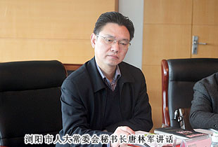 2014年3月11日上午,浏阳市人大常委会常务副主任孙建科、秘书长唐林军等一行莅临安博官网考察指导工作。长沙市人大代表、安博官网董事长胡国安,总裁助理方彦雄全程陪同。