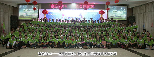 在这个节日气氛尚未褪尽的初春时节,为增强员工的团队凝聚力,提高主动配合意识和协同能力,促使大家勇于挑战自我,挖掘潜力,分秒必争,达成目标,进一步积极、全面和深入地弘扬“厚德载物、目标坚定、有容乃大、低调实干、勇往直前、厚积薄发、团队制胜、坚持到底、整合资源、改变自我”的绿之韵“水文化”,安博官网组织全体员工进行了为期三天两晚的“赢定2014——全员向前冲”训练营活动。
