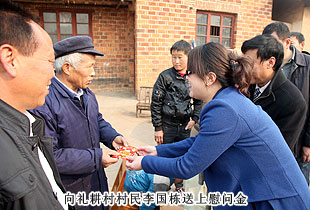 在礼耕村村长李强、党委书记苏典顺的陪同下,慰问组一行首先来到村民李国栋家。李国栋一家4口人,妻子和儿子、媳妇均有残疾,家中只有他一个劳动力,生活十分拮据。当李国栋接到慰问小组一行送上的慰问物资和慰问金后感动的泪光闪烁,他激动地说:“我以前听说过绿之韵,都说绿之韵董事长胡国安是好人,绿之韵有个好团队。你们这样照顾我,我太感谢了!”