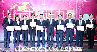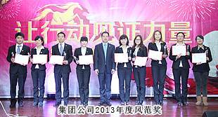 会议最大亮点当属表彰环节。时间记录了脚步,荣誉证明了努力,2013年表彰大会共设置“季度优秀集体”“年度优秀员工”“年度优秀基层管理干部”“年度优秀中层管理干部”“最佳成长奖”“最佳指导老师奖”等多个奖项。荣誉证书和水晶奖杯记载着荣誉,镌刻着感动。表彰不仅是一份嘉奖,更是一次次回顾,回顾每一次突破与飞跃,为明天的奋斗添加更多的信心和力量!