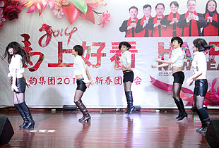 新春团拜会是绿之韵每一位员工年终狂欢的嘉年华,现场张灯结彩,彩球高挂,快乐的旋律,动感的舞蹈,开启了期盼已久的文艺表演。有搞怪的反串模特秀,有深情的民歌演唱,有幽默的大话西游篇外篇,生动有趣的游戏互动……公司领导、各子公司及市场一线的代表们,各部门全员参与,整个会场洋溢着浓浓的喜庆氛围。每个节目都凝聚了大家的心血和努力,演出效果也是毋庸置疑,笑声掌声此起彼伏。