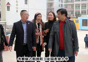 绿之韵所在的浏阳生物科技园内,浏阳绿之韵工业希望小学已声名斐然。就此市领导们把调研第一站选在了这所希望小学。曾经那栋破旧不堪的教学楼,如今面目一新。宽敞白净的教学楼,平整大方的操场,明亮整洁的教室,无不显示着学校的意气风发,一堂生动活泼的投影授课更是得到了大家的称赞。绿之韵工业希望小学的罗校长在介绍到学校前身——老屋小学时情绪激动的说,“那时候学校还在马路对面,只有一栋破旧的楼,哪里有这般模样呀!”参观中,细心的胡国安董事长发现教室里班班通的设备还不够到位,当即表示将再捐赠一批“班班通”用于学校的教学设备支持。