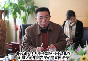 接着,人大常委会副秘书长赵凡存做了总结发言,赵秘书说,胡董事长作为人大代表做了很多好事,从回报社会扶贫帮助大中小学生就学,从环洞庭湖治理提案到解决青少年心理问题辅导提案等,各项社会责任都有决策和参与,建议现场的媒体进行综合性报道,既展现人大代表的光辉形象又要对企业做好形象的宣传,并感谢胡国安董事长对长沙市社会责任作出的贡献。最后,人大常委会秘书赵凡存总结性的对绿之韵的特点提出了24字的高度评价:时间短发展快;管理好贡献大;质量好声誉高;责任强爱心多!