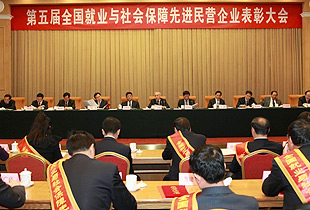 2013年12月16日,全国工商联、人力资源社会保障部、全国总工会在北京联合召开第五届全国就业与社会保障先进民营企业表彰大会。会议由人力资源社会保障部部长尹蔚民主持。中央统战部副部长,全国工商联党组书记、常务副主席全哲洙,全国总工会副主席、书记处第一书记陈豪,人力资源社会保障部副部长信长星,全国总工会副主席、书记处书记焦开河,全国工商联副主席谢经荣莅临现场,安博官网办公室主任冯红应邀出席表彰大会。