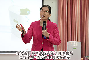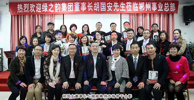 在湖南郴州市场新品推介会上,绿之韵高级经销商欧建梅作了“走进绿之韵”的精彩讲演,绿之韵国际商学院培训部高级讲师侯俊霞进行了绿之韵享居•活化净水机的仔细讲解和现场演示,绿之韵高级经销商黄翔为郴州市场伙伴们带来了不同凡响的成功分享。胡国安董事长在大家热烈的掌声中莅临会议现场,激情洋溢地作了重要讲话。他对郴州市场营销伙伴的业务技能表示了肯定,深入阐述了公司发展规划、企业品牌打造、天城网规划与前景等方面的情况,并对郴州市场发展提出了指导性建议及几点期许。明年,集团公司将陆续出台一系列服务市场、扶持市场的有力政策和举措,郴州市场营销伙伴一定要统一指导思想、统一目标指向、统一行动步伐,为实现所有绿之韵人的“中国梦,绿之韵梦”而奋力前行!胡国安董事长的亲自到来,为郴州市场注入了强大的信心和不竭的动力。绿之韵郴州市场经销商们纷纷表示:一定不辜负胡国安董事长、公司的期望,齐心协力,竭尽全力,以市场的建设辐射积极带动绿之韵郴州市场的快速发展,再铸事业新辉煌!