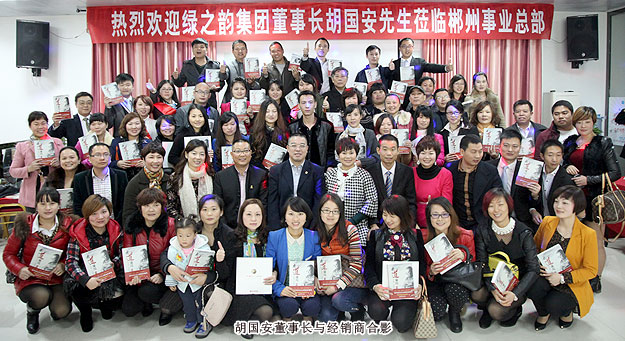绿之韵十周年华诞之际,胡国安董事长倾尽十年心血、以绿之韵精英团队、核心文化“水的精神”为精髓,着力打造的成功智慧书籍《水“道”渠成——成就一生的智慧密码》震撼面市以来,一直深受广大经销商、广大读者的狂热追捧,市场反映异常火爆。在郴州市场新品推介会现场,胡国安董事长应广大经销商的强烈要求,参加了《水道渠成》签售会郴州站活动,经销商们现场抢购,500多本新书瞬间售罄。