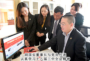 党的十八届三中全会胜利闭幕后,安博官网党总支部、团支部迅速行动起来,认真学习、理解、领会和实践“十八届三中全会”精神,在集团公司迅速掀起学习贯彻““十八届三中全会”的热潮。