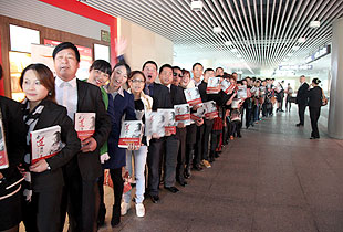 《水“道”渠成》一书,是绿之韵“掌舵人”胡国安董事长呕心沥血十年之久的倾力之作,绿之韵十周年华诞之际,甫一面市就备受广大读者追捧,市场反映十分强烈。2013年11月19日,胡国安董事长应广大读者、粉丝的要求,莅临湖南黄花国际机场参加《水“道”渠成》读者签售见面会,300多名铁杆粉丝和拥趸一大清早就在签售仪式现场排起长龙,争相购买,一睹中国“水文化”之集大成者董事长胡国安先生的风采,不到两个小时近600册《水“道”渠成》瞬间售罄。