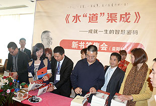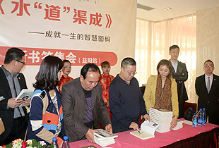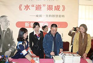2013年11月16日,胡国安董事长应广大读者、粉丝的强烈要求,现身湖南益阳参加《水“道”渠成》读者签售见面会,1000多名铁杆拥趸很早就在签售仪式现场排起了长龙,争相一睹“水文化”之集大成者董事长胡国安先生的风采,不到两个小时1000多册《水“道”渠成》瞬间售罄。