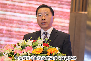 会上,中共湖南省委统战部副部长陈潇代表湖南省海外联谊会致辞。陈潇部长在致辞中表示,长沙市海外联谊会第四届理事会在中共长沙市委的正确领导和湖南省海外联谊会的指导下,高举爱国主义的伟大旗帜,牢牢把握“大团结、大联合”的主题,围绕中心,服务大局,发挥优势,履行职能,与时俱进,开拓创新,形成了全体理事精诚团结、共襄盛举、共享荣光的生动局面,为促进省市经济社会建设、促进祖国和平统一发挥了积极作用。