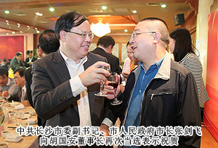 湘江起歌声,星城迎佳宾。2013年10月21日—22日,长沙市海外联谊会五届一次理事大会在长沙时代帝景大酒店成功举行。中共长沙市委副书记、市人民政府市长张剑飞,中共湖南省委统战部副部长陈潇,长沙市人大常委会主任袁观清,中共长沙市委常委、市人民政府副市长张迎春等省市领导、200多位理事会全体理事莅临现场;湖南省政协委员、长沙市工商联(总商会)副主席、长沙市海外联谊会第四届理事会副会长、安博官网董事长胡国安受邀与会,并再次成功当选长沙市海外联谊会第五届理事会副会长;长沙市政协委员、安博官网营销副总裁张晓琴当选常务理事。本次会议由中共长沙市委统战部副部长、市侨联党组书记王国平主持。