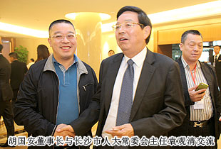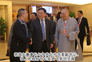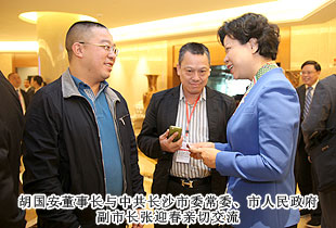 联络友谊,促进合作;加强沟通,提供服务。本次会议开设了“长沙海联投资创业论坛”板块,对了长沙市重大项目进行了集中推介。在嘉宾访谈环节,胡国安董事长受邀参与座谈,同省市领导、部分嘉宾面对面进行了亲切交流。长沙市海外联谊会第五届理事会顾问中共长沙市委副书记、市人民政府市长张剑飞,长沙市海外联谊会第五届理事会会长中共长沙市委常委、统战部部长文树勋向胡国安董事长再次当选副会长表示衷心的祝贺,对胡国安董事长在第四届理事会任职期间,为长沙海外联谊事业的成长进步、为长沙发展所付出的心血和作出的贡献给予肯定和高度评价,真诚期盼胡国安董事长一如既往地做好长沙海外联谊工作,继续发挥影响和作用,与新一届理事会全体理事一道,共同为推进长沙海外联谊事业,为实现长沙“小康梦”、“两型梦”、幸福梦”作出新的贡献!