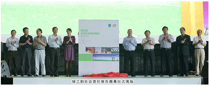 “行大道,民为本,立天下。”十年,仅仅是个崭新的开始。发布会上,绿之韵再次发布社会责任报告,胡国安董事长、董事常务副总裁劳嘉和莅临现场的领导嘉宾上台为《绿之韵2003—2013年度企业社会责任报告》进行揭幕仪式,赢得了台下家人们一阵阵热烈的掌声。
