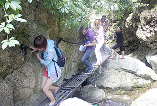 在湖南省安化县的崇山峻岭和山涧溪流之间,绵延着一条神秘的茶马古道。千百年来,无数的马帮在这条道路上默默行走,悠远的马铃声,回荡在山谷、急流和村寨上空,开辟了一条通往域外的经贸之路,形成了世界上地势最高、山路最险、距离最遥远的茶马文明古道。在关山峡谷层岩叠翠,怪石嶙峋的道路上行走,绿之韵同仁们尽情体验了一番攀岩探险的刺激和乐趣。正是因为古道的艰险超乎寻常,沿途壮丽的自然景观也不断地激发人潜在的勇气、力量和忍耐。“马帮凭借自己的刚毅、勇敢和智慧,用心血和汗水浇灌了一条通往茶马古道的生存之路、探险之路和人生之路。茶马古道上马蹄印仍历历在目,带着我们遥忆先辈们的经贸故事,值得我们深思和学习!”绿之韵董事常务副总裁劳嘉深深感慨道。