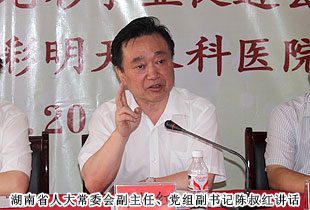 会上,长沙光彩明天眼科医院院长李晓阳汇报了医院求助治疗贫困弱视儿童的工作情况;治愈儿童代表,接受治疗的弱视儿童家长作了感恩发言;湖南省人大常委会副主任、党组副书记陈叔红发表了重要讲话。据悉,中共湖南省委统战部、省工商联、省光彩事业促进会此前在全省就贫困家庭的弱视儿童进行了筛选,发现并纳入此次活动的儿童共有627名。