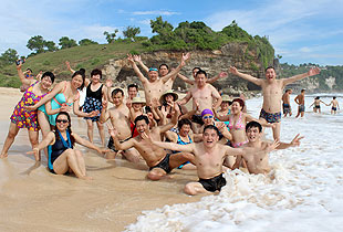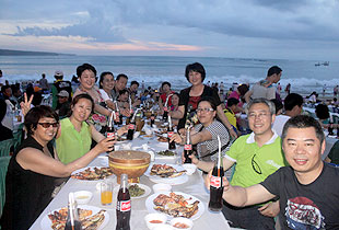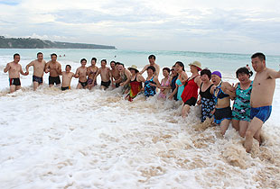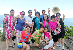 为什么要去海边?常见的说辞,比如,看海滩,吃海鲜,听海浪,吹海风。再比如,思考人生,探索宇宙,审视过去,展望未来。绿之韵人的理由比较简单,寻找快乐,享受事业带来的高品质生活。南湾,是巴厘岛南端最著名的水上活动集中区域。迎着海阔天蓝及洁白柔细的海滩,体验碧海水蓝天追求感官上的刺激,倘徉在南洋风情之中,绿之韵精英们好不惬意。搭乘玻璃底船前往南湾对岸的海龟岛,沿途海风徐徐,海中成群的各色热带鱼,瑰丽多彩的珊瑚礁群,让大家目不暇接。抵达海龟岛后,大家纷纷与大海龟、大蟒蛇、大蜥蜴拍照留念,欣赏惊心动魄、刺激悬疑的斗鸡大赛。著名的库塔海滩,是巴厘岛最美海滩之一。库塔海滩是巴厘岛上最著名的戏水场所,是最繁华、游人最多的地区。这里的海滩平坦、沙粒洁白、细腻,海滩风急浪高,不适合泛舟、游泳,但却是冲浪的好地方,深得寻求刺激的精英们的青睐。每天这里斜阳西下的美景也迷倒了无数游人。在五星级豪华海景酒店外,一条看不见尽头的海岸线,一片洁白热情的沙滩,衬托着齐腰高的一次次海浪,让绿之韵人找到了释放快乐的源泉。我们半夜抓海蟹,追海浪,大声呼唤,堆沙子,晒太阳,学游泳,打水仗…好不惬意!另一种不同的享受便是逛街。洋人街,是巴厘岛著名的商业街。尽管街道并不宽,却张弛有道,热潮涌动,却不喧闹。抵挡不住名牌的诱惑绿之韵精英们纷纷前往免税的奢侈品零售店,趁这次难得的假期疯狂“扫货”,令人叹为观止。